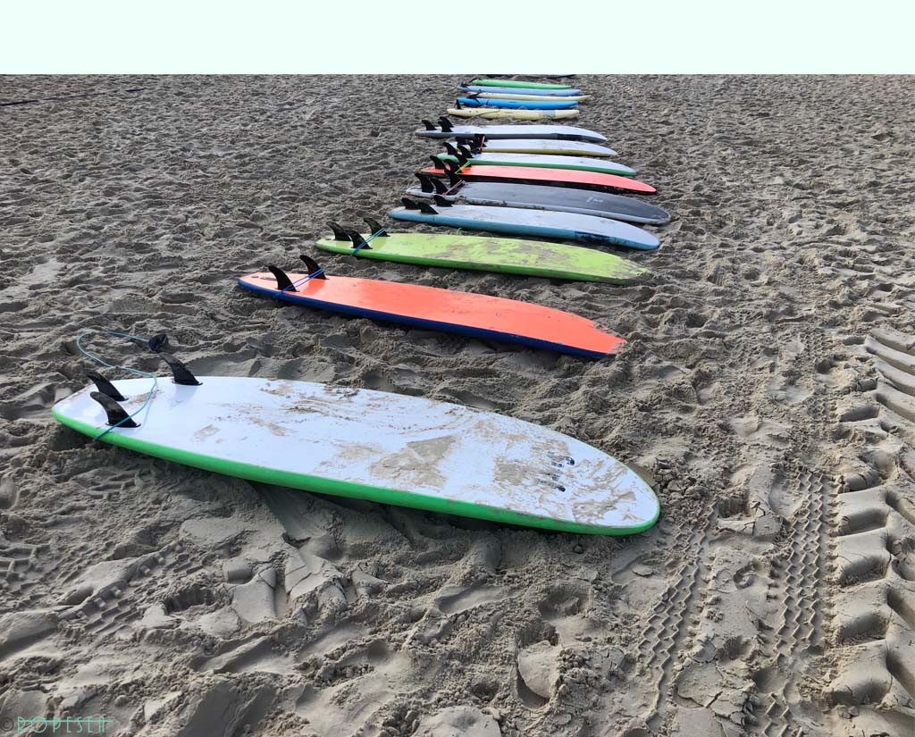 Sense the beach texture viewing the delicate colorful sand surfboards photo.