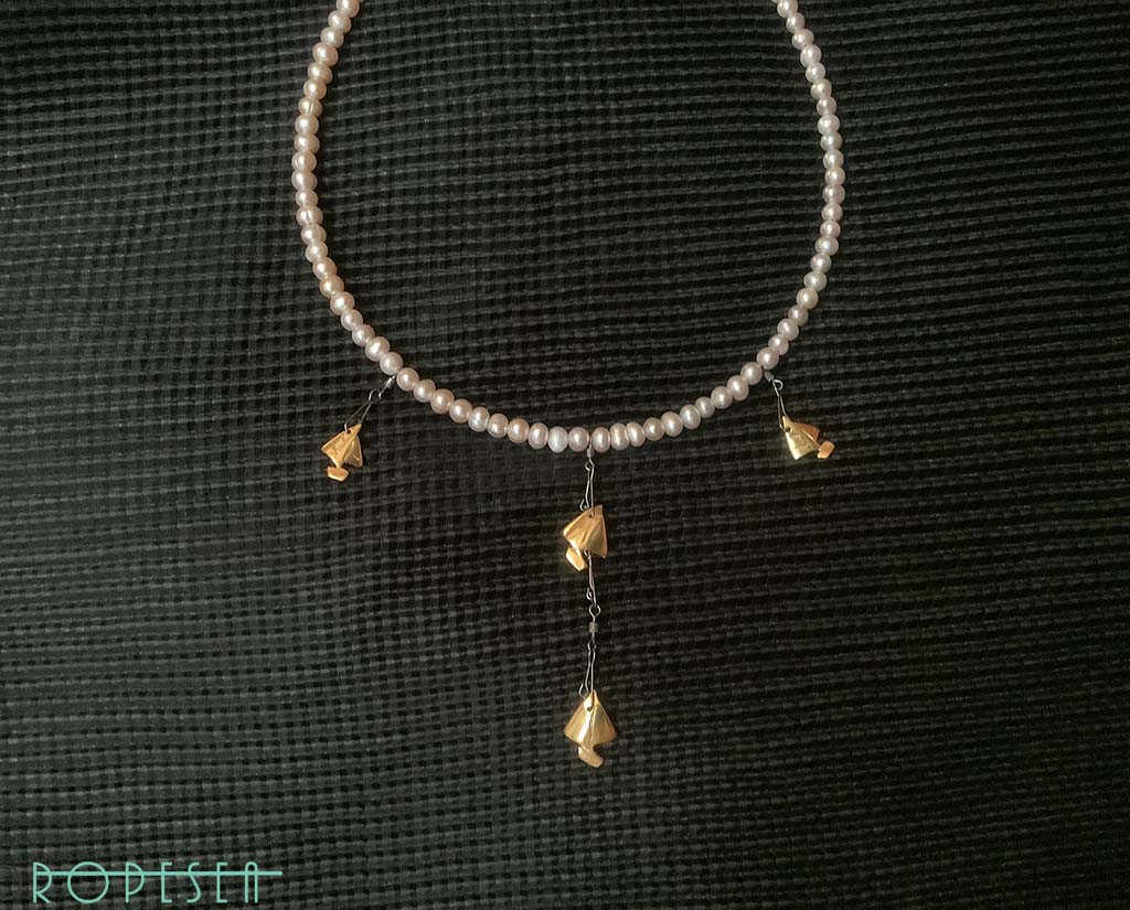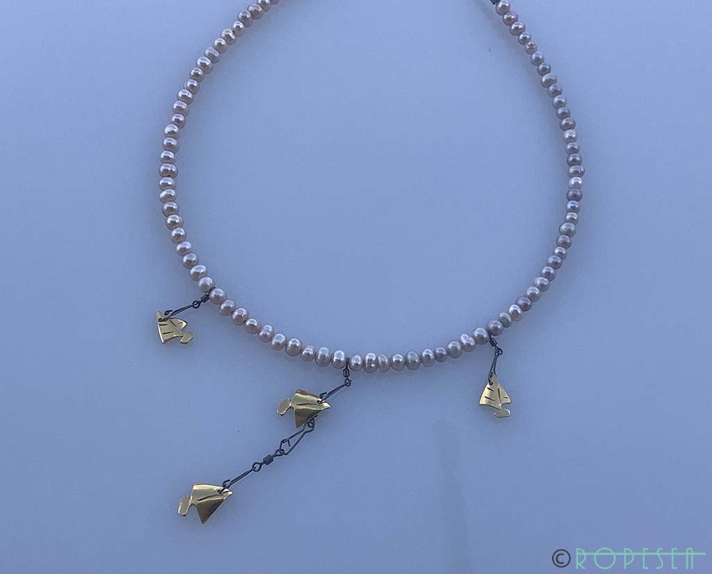 Rope Sea Mauve soft pink purple pearls 4 golden sailing boat necklace gives you a stylish sophisticated attractive classic look.
